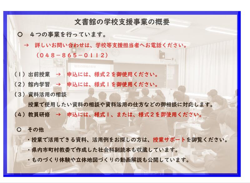 学校関係者の方で興味のある方は、文書館学校等支援担当まで(電話048-865-0112)お問い合わせください。