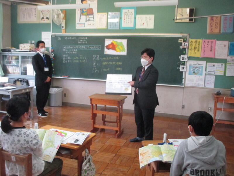 市町村の移り変わりの学習では、昔の写真や地図などを使って、調べ学習を進めます。子供たちの過ごす今の町の様子と比べながら変化を学ぶことができます。
