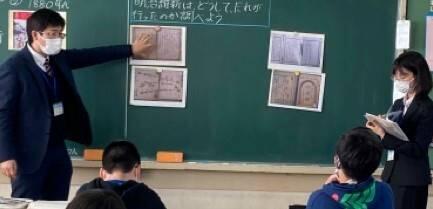 明治維新期に政府から埼玉県に通達された文書や文明開化に関係する資料を多数用意し、子供たちはタブレット上で資料を調べました。