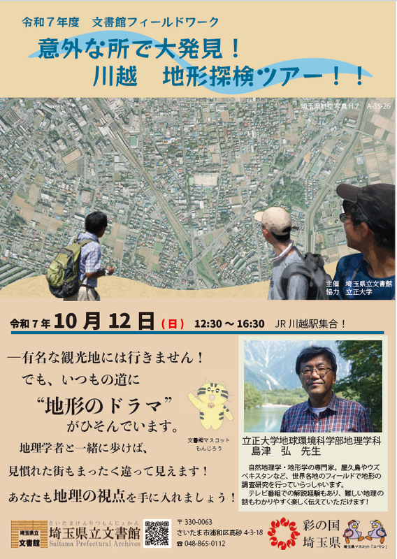 令和7年度は、10月12日(日曜日)に文書館フィールドワーク「意外な所で大発見! 川越 地形探検ツアー!」を開催します。