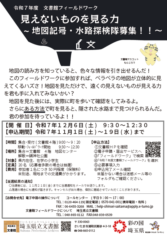 【令和7年度文書館フィールドワーク 電子申請へ】 (9月1日から左のリンクが使えます)