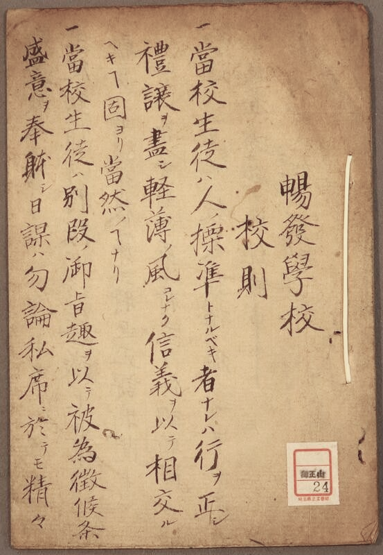 ⑧明治6年(1873)「暢発学校(校則・舎則)」(御正山家〈旧東陽寺〉文書24)
