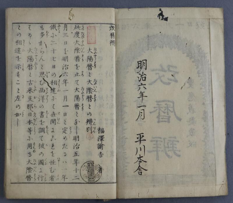 明治6年(1873)、明治政府はそれまで使用していた太陰太陽暦を廃止し、太陽暦を採用しました。太陰太陽暦は月の満ち欠けをもとに作成した暦です。その作成には、二十四節気の設定や閏月の挿入、日食・月食の予告などを行わなければならず、天体の観測や計算が必要でした。