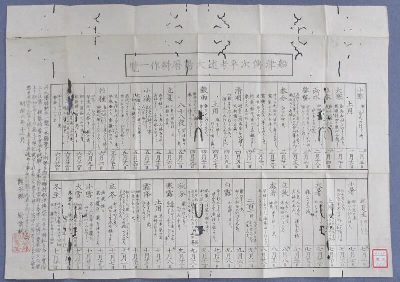 太陽暦耕作一覧(船津伝次平考述、町田家文書180)