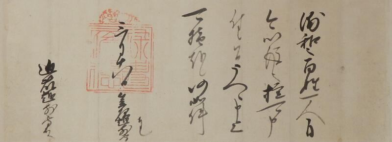 日付上に捺された印は「禄寿應隠(ろくじゅおうおん)」の印文で、上部に虎を配しています。北条氏が発給したもので、一般に「虎の印判状」と呼ばれています。