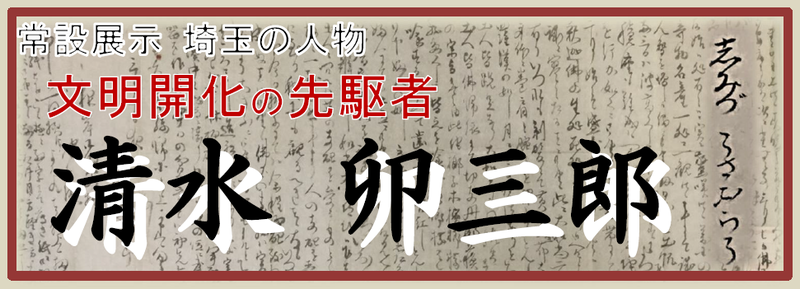 文政12年(1829)、羽生領町場村(現羽生市)で酒造業を営む家に生まれた清水卯三郎は、横浜に出て英語を学び、その才を生かして、薩英戦争では英国側の通訳として和平に尽力、また、慶応3年(1867)のパリ万国博覧会に日本人唯一の商人として参加するなど、幕末の外交・貿易で活躍しました。